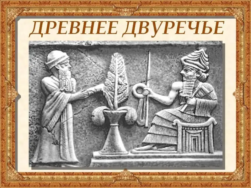 В Двуречье существовали мифы. В мифе о сотворении мира рассказывается о том, что бог создал небо и землю, посадил на ней растения, заселил ее животными. Из глины бог вылепил первых людей, подобных богам, по своему образу и подобию.