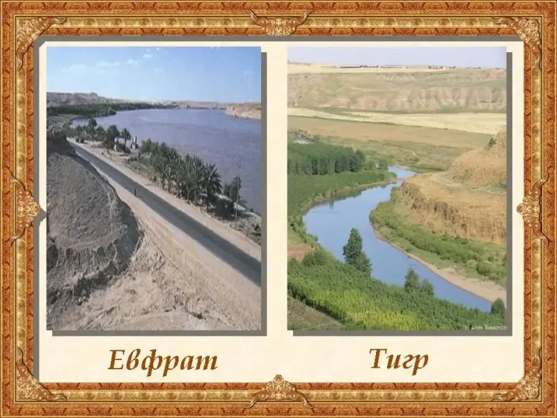 Природа древнего Двуречья была очень схожа с природой Египта (Африка, Азия, Аравийский полуостров, р. Евфрат и р. Тигр, Персидский залив, Двуречье (Междуречье, Месопотамия).