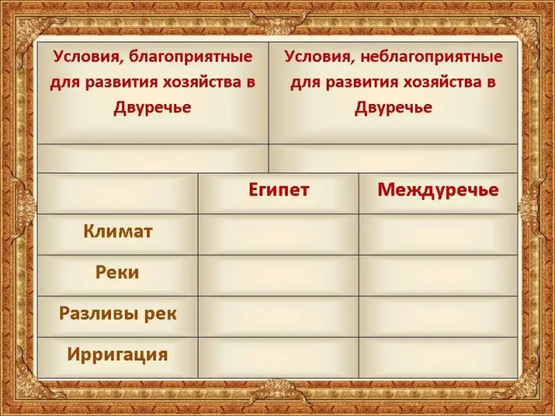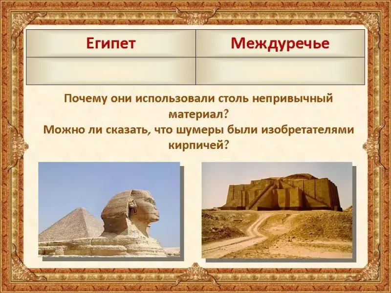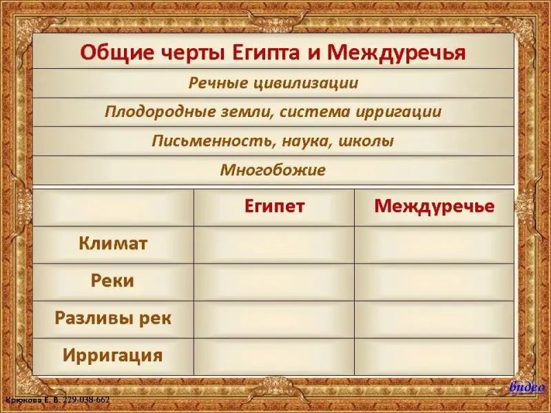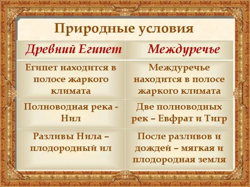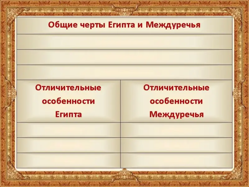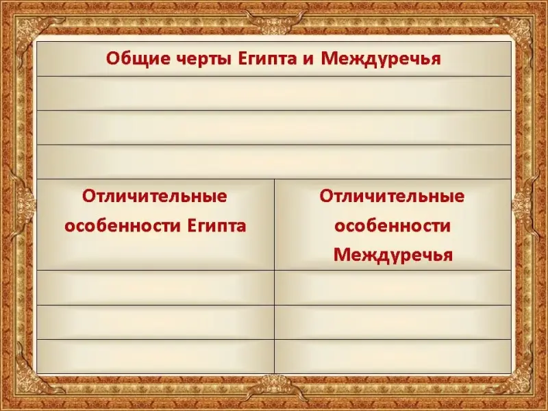 | Отличительные особенности Египта | Отличительные особенности Междуречья |