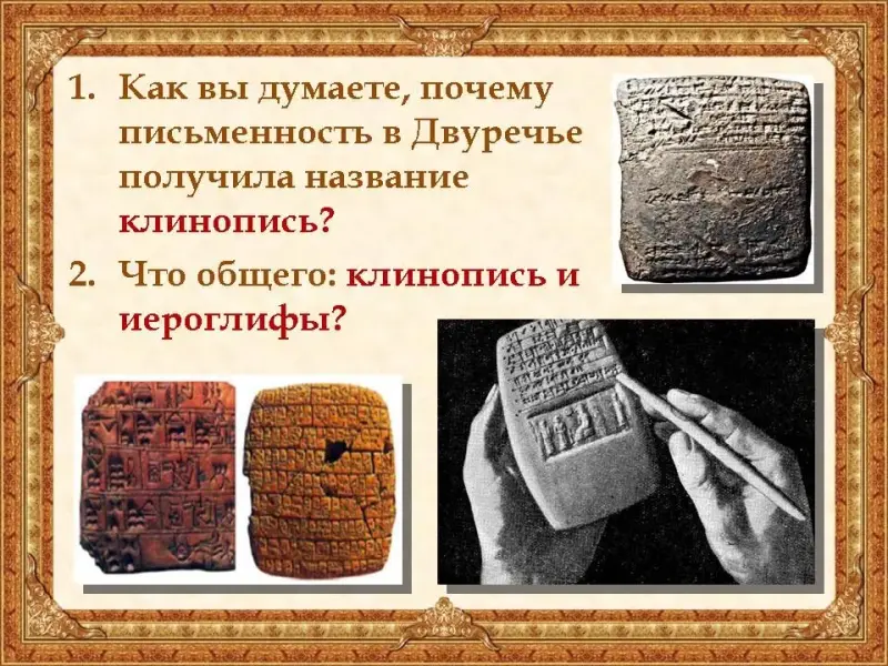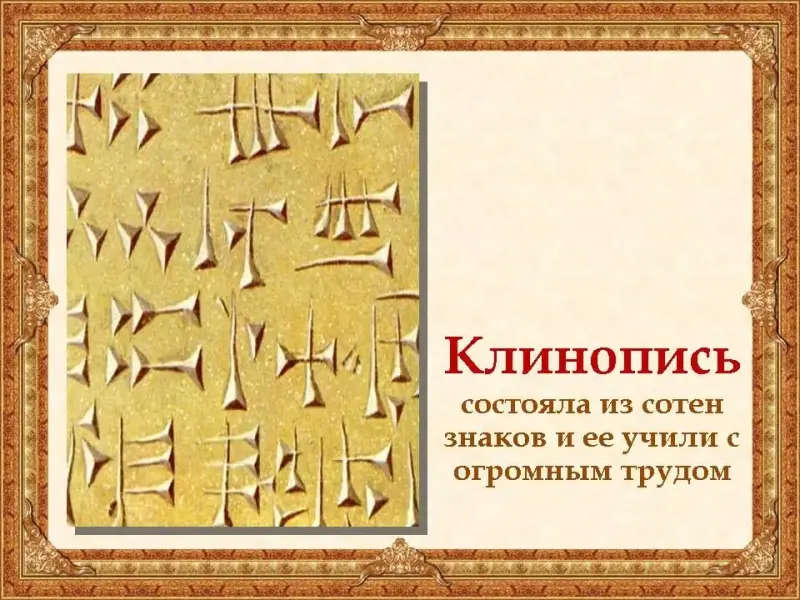 Письменность называлась клинопись, знаки на письме были похожи на маленькие клинышки (Презентация)