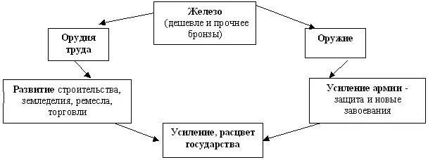 Добыча, обработка и использование железа - это, несомненно, прогрессивное явление для государства, использующего это достижение. Но здесь стоит проблема нравственного выбора: первый - более долгий и тяжелый; второй - быстрее и легче, но основан на страдании других людей.