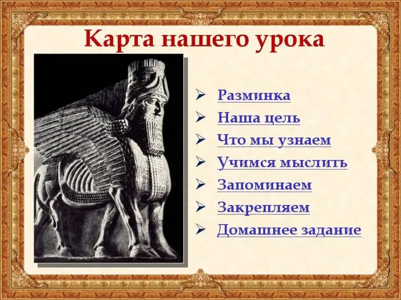 - создать условия для оценки с нравственных позиций методов создания и поддержания Ассирийской империи, оценить действия ассирийца с позиций других народов и стран