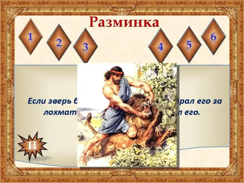 5. Если зверь бросался на меня, то я брал его за лохматую шерсть и умерщвлял его. И с этим филистимлянином будет то же что со зверем. Я его камнем из пращи, и узнают все, что есть бог в Израиле.