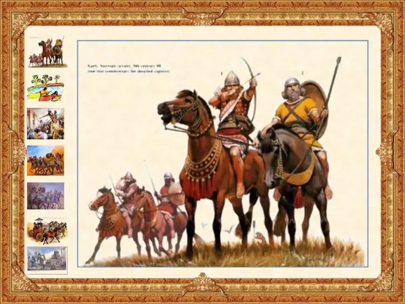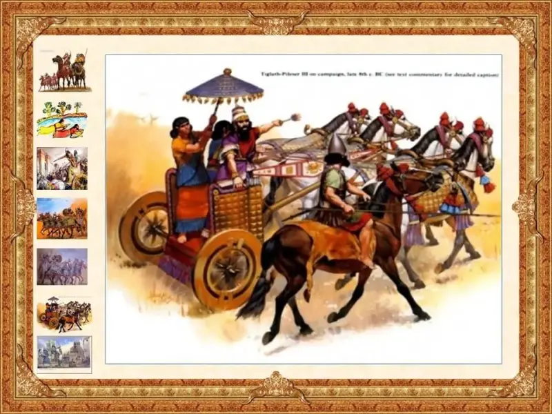 Ассирийцы впервые стали использовать конницу, которая подчас вытесняла отряды колесниц. Главным орудием ассирийцев был лук