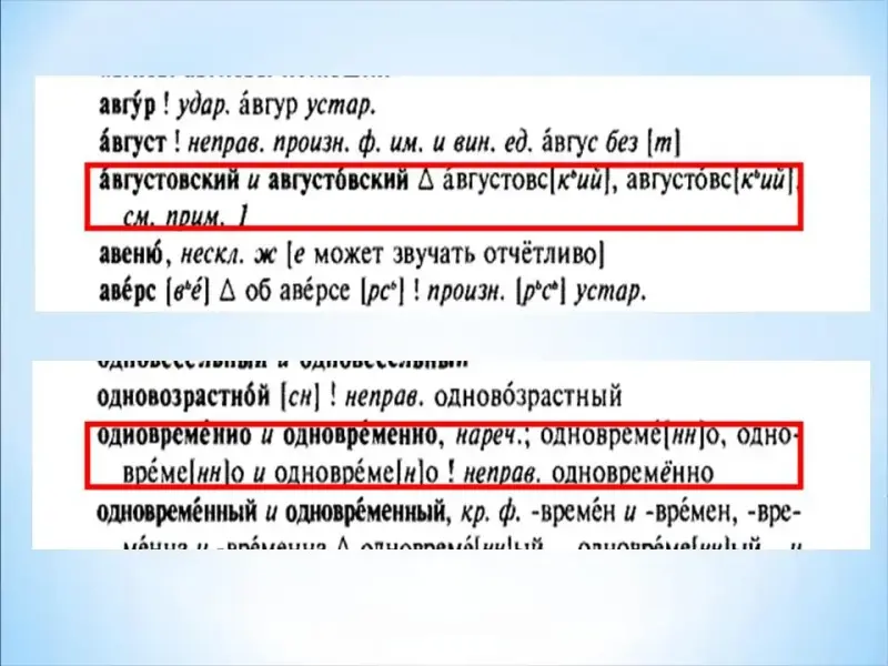 Так, в "Словаре ударений русского языка" под ред. И.Л. Резниченко равноправные (одинаково правильные) варианты вводятся с помощью союза и, например: Августовский и августОвский, одноврЕменно и одновремЕнно, террор [тэ и те], декольтированный [дэ и де].