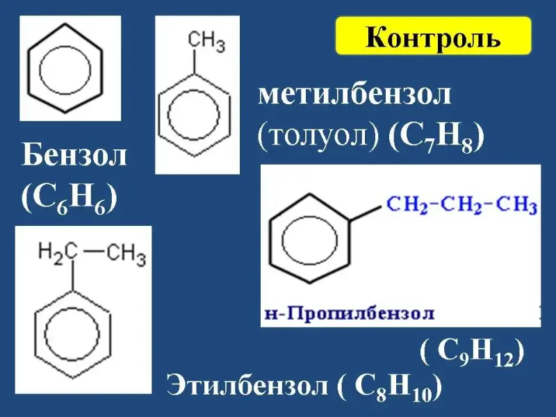 3) актуализировать понятие о гомологии и общей формуле гомологического ряда на примере ароматических углеводородов;