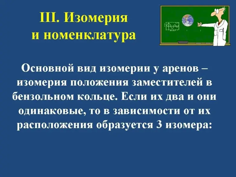 4) расширить понятие об изомерии на примере изомерии положения заместителей в бензольном кольце, познакомить учащихся с новой номенклатурой органических веществ;