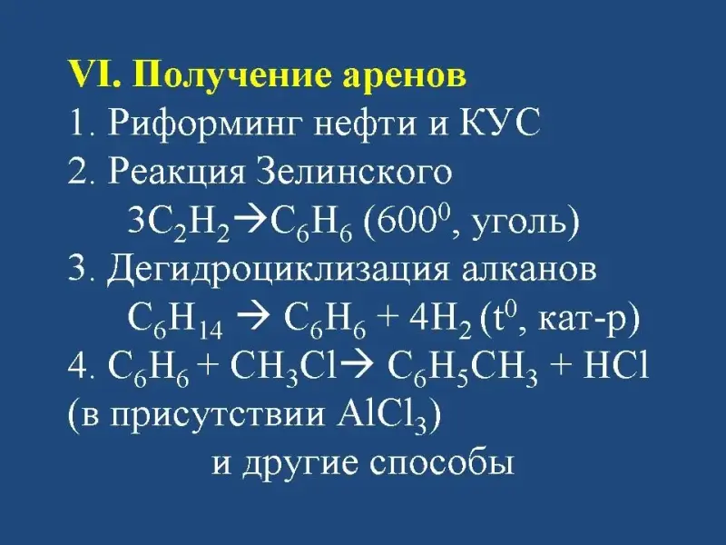 3) изучить физико-химические свойства ароматических углеводородов, основные способы их получения и области применения.