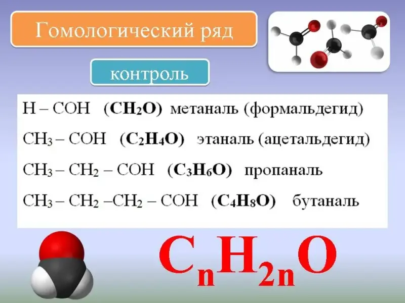 2) актуализировать понятие о гомологии и общей формуле гомологического ряда на примере альдегидов;