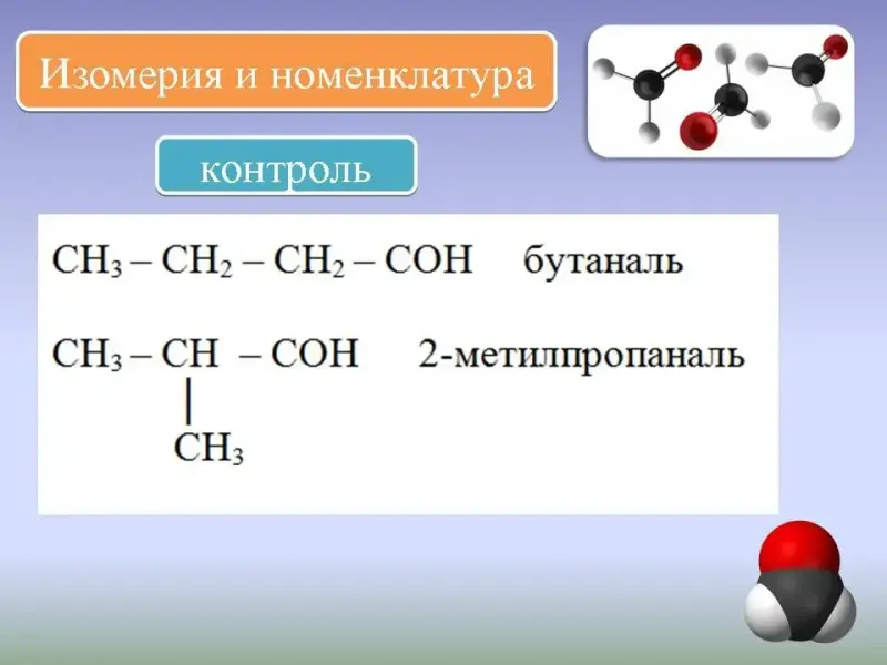 | Изомерия альдегидов. | Контроль ответа. | Слайд 6 |