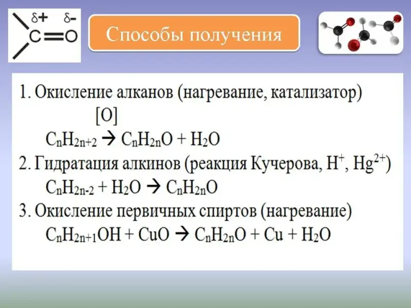 3) изучить химические свойства альдегидов, основные способы их получения.