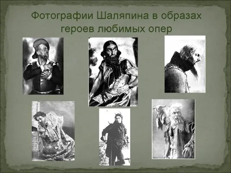 Другим шаляпинским феноменом было умение перевоплощаться на сцене. Причем перевоплощение было и внешним, и внутренним. Его голос мог быть то юным, то старческим, передавать сложную гамму переживаний. Об этом свидетельствуют фотографии певца и воспоминания друзей.