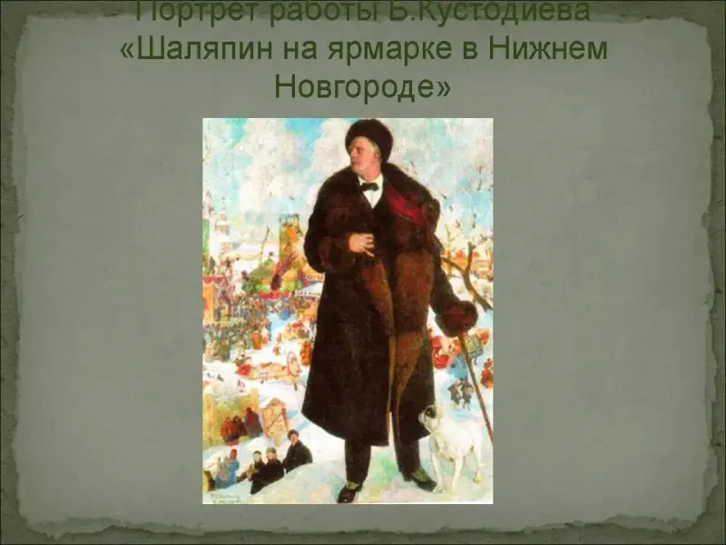 Шаляпин был излюбленной моделью для художников-современников. Существует множество портретов, написанных в самых разных жанрах, от полнофигурных портретов до метких карикатур и шаржей. Художники в своих портретах пытались передать не только внешнее сходство, но и его талант перевоплощения. Его изображали в образах оперных персонажей, на концертах, в домашней обстановке. Но самым любимым портретом был портрет Кустодиева. (Слайд №6)