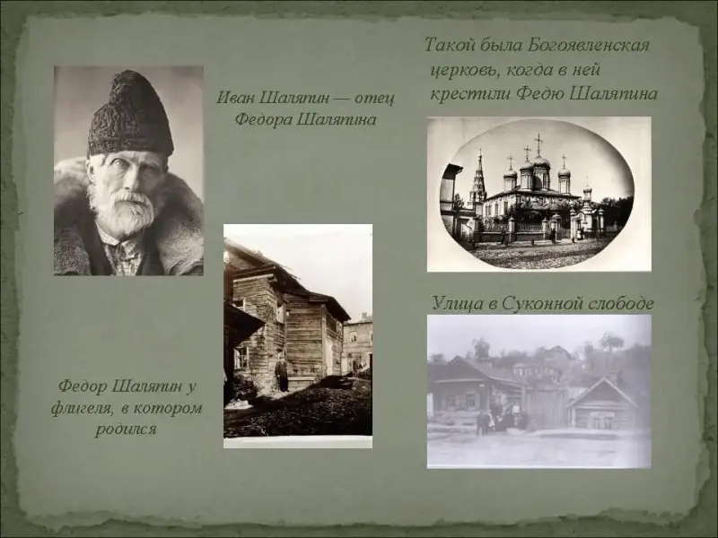 В память Шаляпина с детства были заложены впечатления от пестрой городской казанской жизни, красочного татарского быта, базарной суеты. Все это было ему дорого.