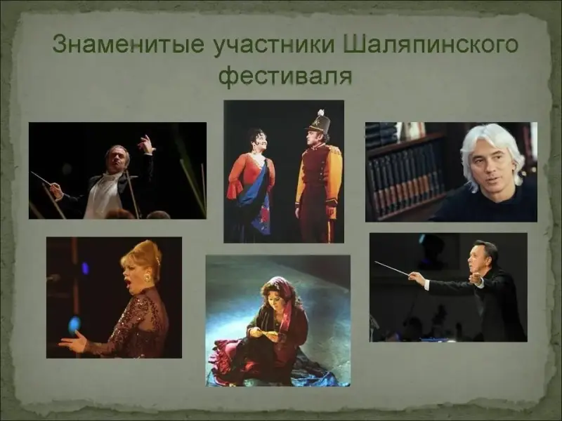 В разное время в спектаклях и концертах фестиваля участвовали практически все звезды российской оперы: Ирина Архипова, Тамара Синявская, Дмитрий Хворостовский, Любовь Казарновская, Ольга Бородина, известные дирижеры - Михаил Плетнев, Валерий Гергиев и многие другие. Неизменно в программу фестиваля включена одна из любимых опер Шаляпина - "Борис Годунов" М.Мусоргского.