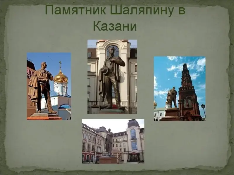 Казань гордится своим великим земляком. Именно любовь к Шаляпину и желание привлечь внимание общественности к наследию певца и оперному искусству способствовали идее проведения в Казани, на родине певца, ежегодного Международного оперного фестиваля. (Слайд №16)