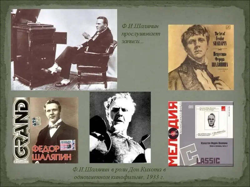 Много раз в своей жизни Федор Иванович сетовал на то, что после его смерти потомки не смогут судить о том, как он пел. К счастью, он жил в 20 столетии, когда одним из выдающихся достижений стал граммофон. В 20-30 г.г. было сделано около 300 записей певца, которые дают возможность нам, потомкам, насладиться голосом великого русского баса. (Слайд №20)