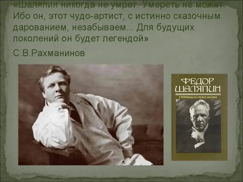 "Шаляпин никогда не умрет. Умереть не может. Ибо он, этот чудо-артист, с истинно сказочным дарованием, незабываем... Для будущих поколений он будет легендой" - писал его друг Сергей Рахманинов. (Слайд №21)