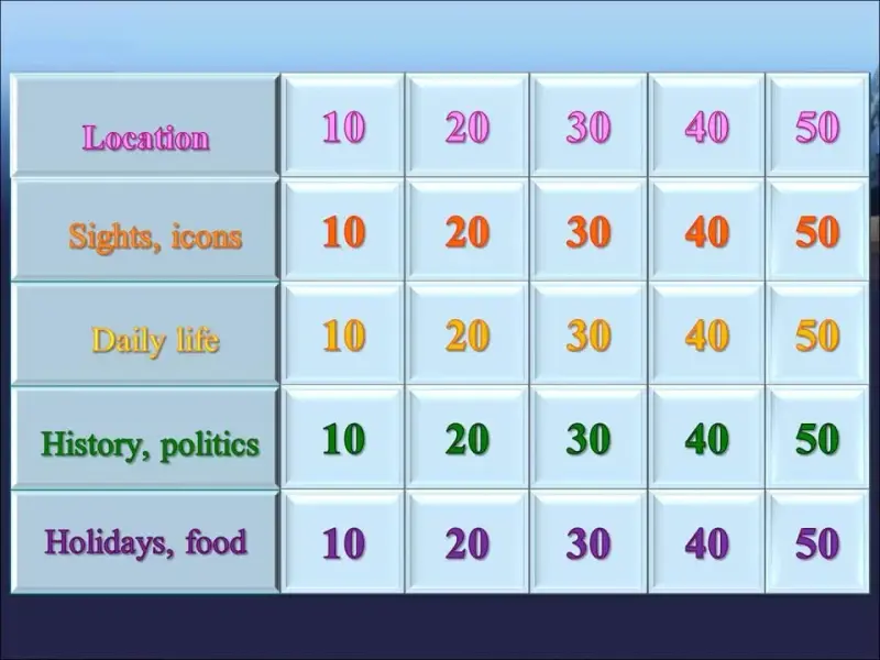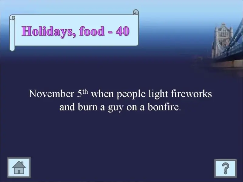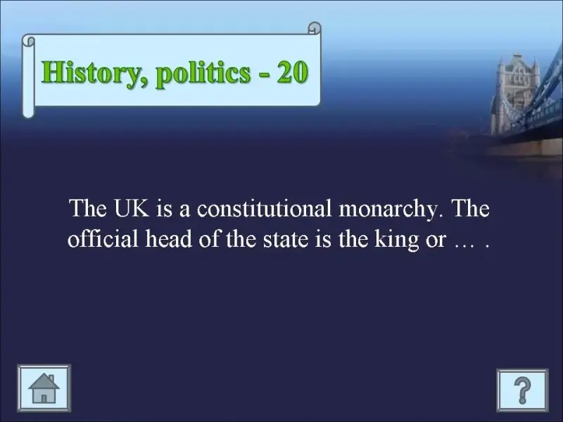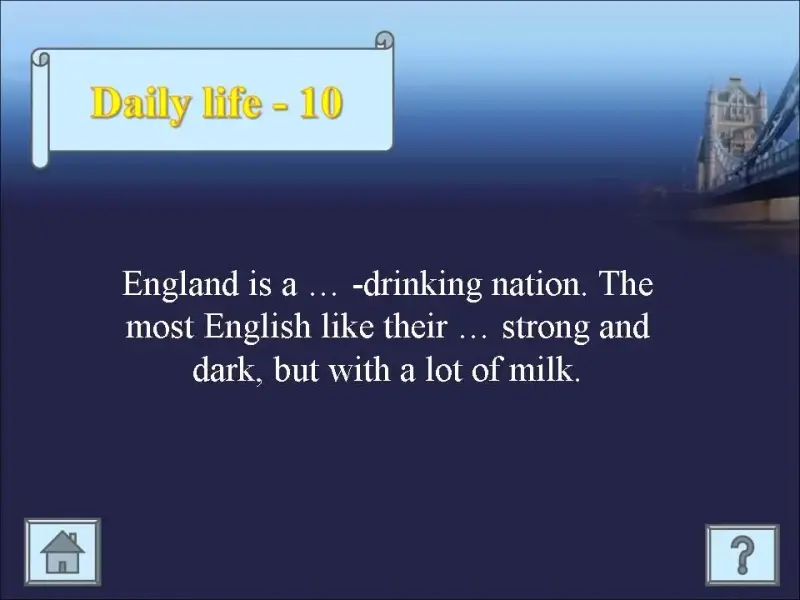 Do you like to play? I have prepared a game for you. Let's play! To win you must know some facts about England. Do you remember them?