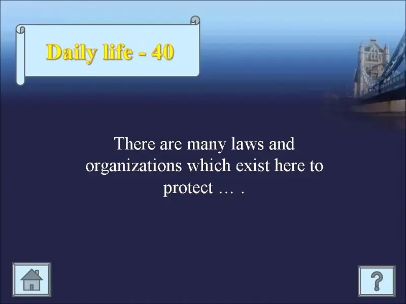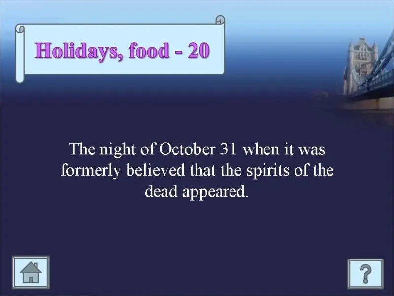 Учитель (ведущий) зачитывает соответствующий вопрос на слайде. На обсуждение каждого вопроса дается 30 секунд. Команда получает очки, если даст правильный ответ. Чтобы проверить, правильный ли был ответ, заработает команда очки или нет, учитель переходит к слайду с ответом на вопрос (знак вопроса на слайде).
