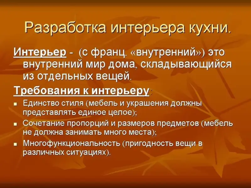 Прежде чем приступить к созданию собственного интерьера кухни следует ознакомиться с требованиями, предъявляемыми к ней.