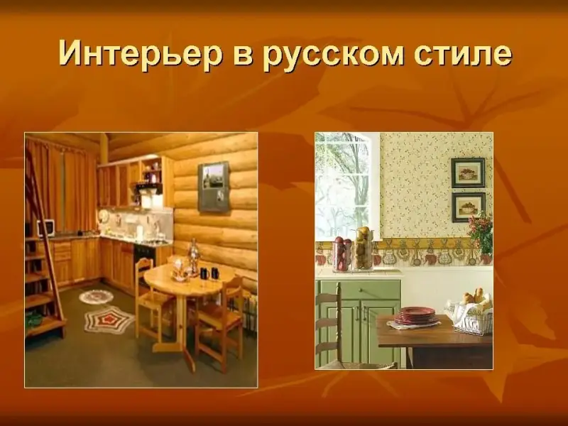 Одним из основных элементов декора интерьера кухни в русском стиле, являются резные деревянные орнаменты и узоры. Славяне всегда считали, что использование таких узоров, играет роль своеобразных амулетов для защиты дома, от всякого рода нечистой силы. Поэтому, орнаменты или узоры лучше всего размещать над окном или кухонной дверью. Несомненным является тот факт, что интерьер кухни в русском стиле под силу выполнить тем людям, которые действительно уважают русские народные традиции, тем самым, стараясь всю любовь к своей истории, воплотить в жизнь, путем отражения их в интерьере кухни в русском стиле.