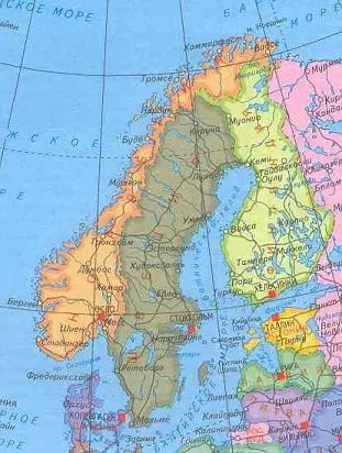 Самый большой в Европе Скандинавский полуостров похож на тигра, приготовившегося к прыжку. На этом полуострове расположились Швеция, Норвегия, Дания, Исландия. Финляндию также причисляют к скандинавским странам, хотя от этого полуострова её отделяет Ботнический залив. (Учащимся предлагается рассмотреть положение Скандинавского полуострова на географической карте).