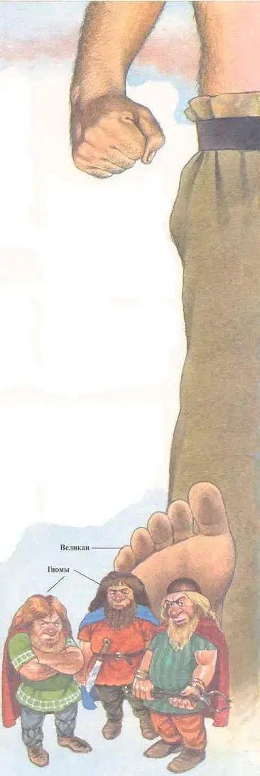 Великаны и гномы обитали в двух разных мирах, разделённых океаном. Великаны были злобными существами, жившими в горах. Они нарушали мир и покой всего живого с помощью колдовства и обмана. Гномы жили под горами, в пещерах. Это были безобразные, уродливые создания, любившие власть и золото. Славились как непревзойдённые ювелиры.