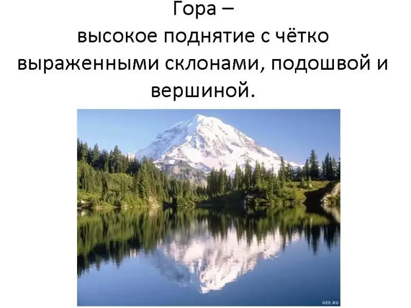 Горы выше, сильнее расчленены, имеют большие перепады высот. Равнины - слаборасчленённые участки с различием относительных высот не более 200 м.