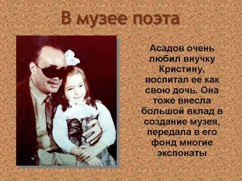 Память о поэте увековечена: в Одинцовском гуманитарном институте открыт мемориальный музей-квартира Э.А.Асадова. Пройдёмся и мы по залам этого музея. (Слайды 26 - 31)