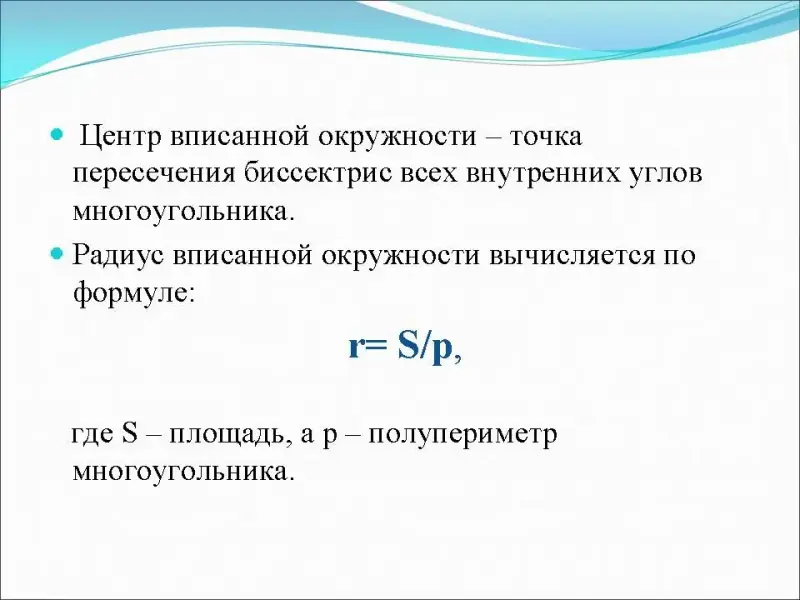 Задание 1. Запишите формулу для нахождения радиуса вписанной окружности. (Формула записывается на доске и в тетрадях)