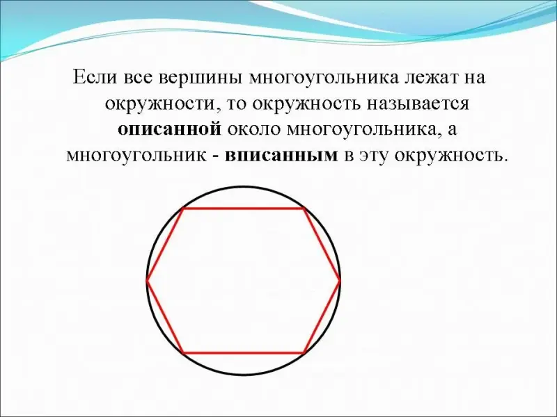 4. Какая окружность называется описанной около многоугольника? Какой многоугольник называется вписанным в окружность?