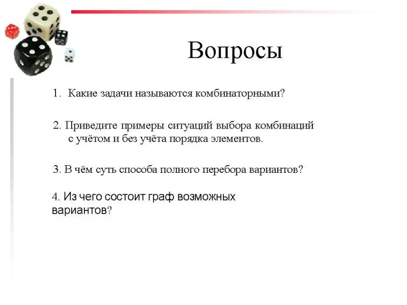- понятие комбинаторные задачи;