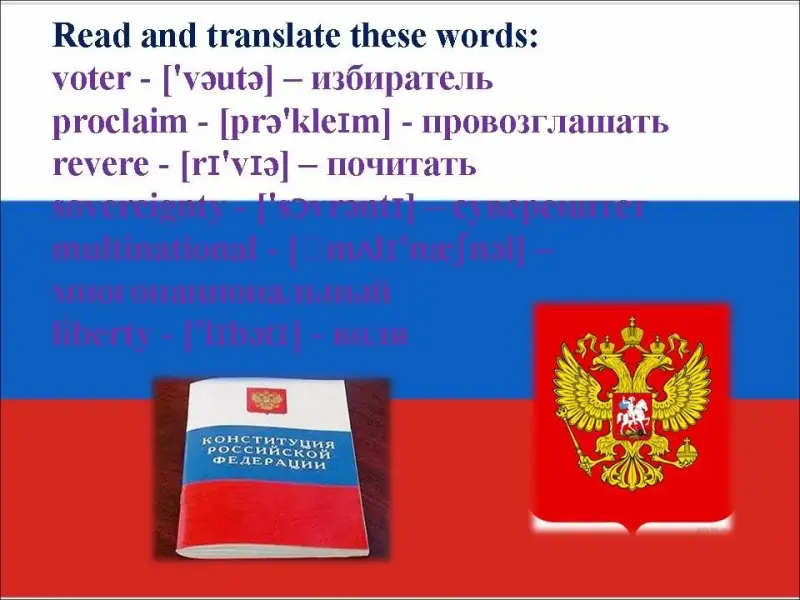 What can you see in the picture? (It's the Constitution of the Russian Federation.)