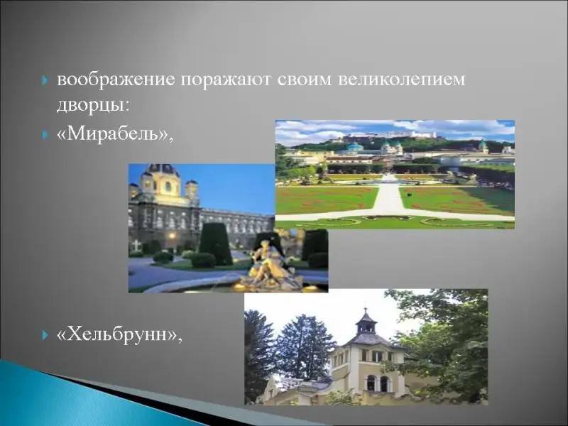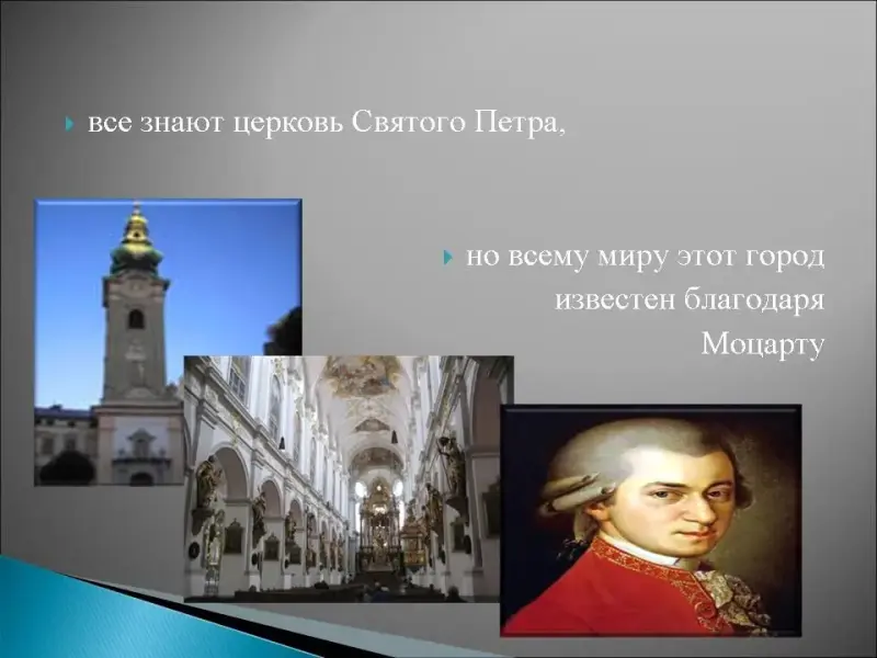 4. Название этого австрийского города переводится как "Соляная крепость", здесь жил и умер известный врач и философ Парацельс Теофраст фон Гогенгейм, воображение поражают своим великолепием дворцы: "Мирабель", "Хельбрунн", все знают церковь Святого Петра, но всему миру этот город известен благодаря Моцарту