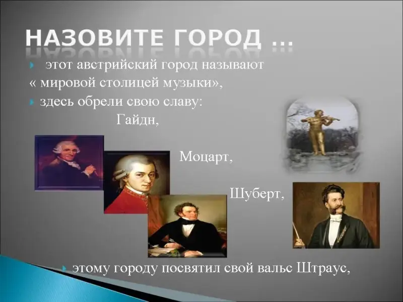Викторина по страноведению "Назовите город…"