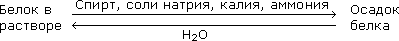 3. Осаждение белков может происходить под воздействием температуры, химических веществ, лучистой энергии и других факторов. При слабом воздействии распадается только четвертичная структура, при более сильном - третичная, а затем - вторичная, и белок остается в виде полипептидной цепи. Этот процесс частично обратим: если не разрушена первичная структура, то денатурированный белок способен восстанавливать свою структуру. Отсюда следует, что все особенности строения макромолекулы белка определяются его первичной структурой - обратимое (высаливание):