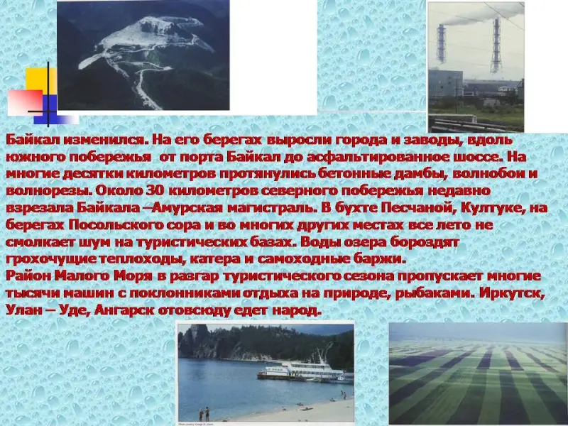 - формирование экологического сознания школьников на примере экологических проблем Байкала и их причин.