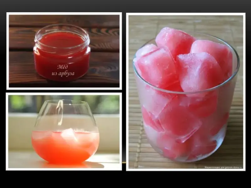 Готовят арбузный «мед». Он называется нардек. Из арбуза делают сок, а также оригинальный лед для напитков.