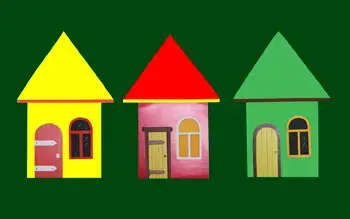 Дети делят слова на 3 группы у себя на парте, работая парами. Учитель в это время проверяет, как дети выполняют задание. Потом вывешивает на доску слова, такие же как и в конвертах у детей и 3 домика для этих слов.