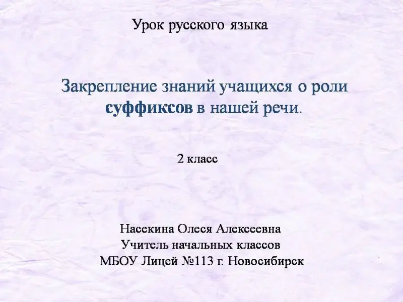 Закрепление знаний учащихся о роли суффиксов в нашей речи