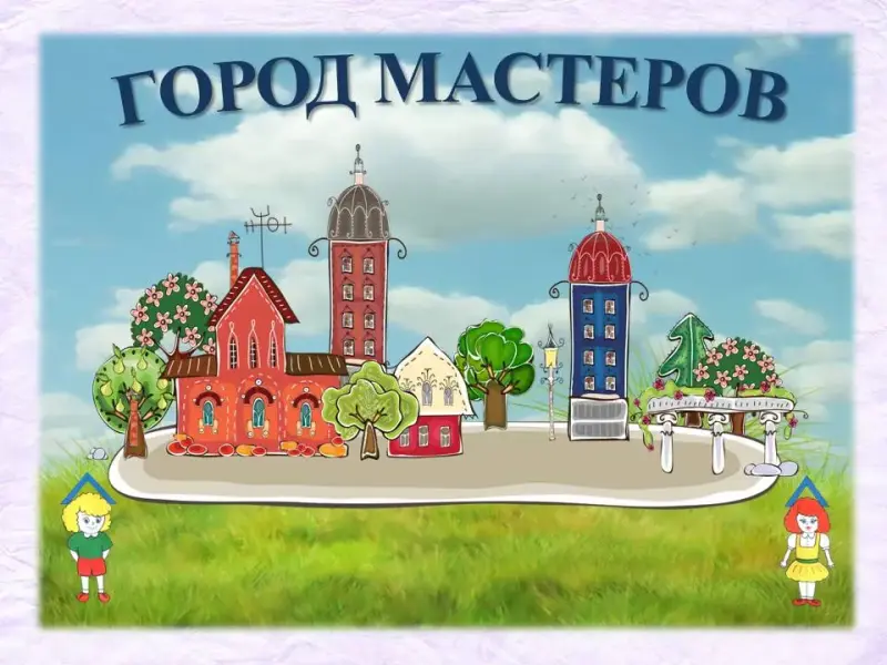 У: Вот мы и подъехали к Городу Мастеров. Ошибка лишила трудолюбивых жителей этого городка их орудий труда. Чтобы они смогли назад их получить, вам ребята задание - отгадать загадки о профессиях. А затем выделить правильно суффиксы в названиях профессий. Слайд 13.