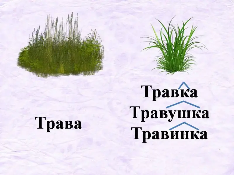 - Трава - травка, травинка, травушка (-к, -инк,- ушк)