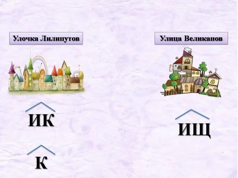 «Злая колдунья Ошибка заколдовала Суффиксоград. Все суффиксы этого города исчезли, и от этого страдаем все мы, жители волшебной страны, и просим вас, дорогие ребята, помочь».