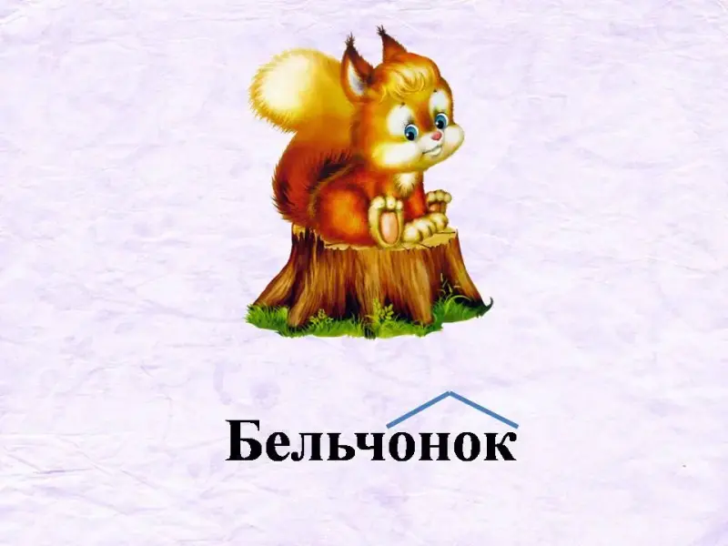 У: Злая Колдунья навела неразбериху и в волшебном зоопарке, к которому мы приближаемся. Слайд 40. Детёныши животных потеряли своих родителей, так как злая Колдунья отняла у них суффиксы. Давайте поможем им! Я буду называть животное, а вы при помощи суффиксов должны образовать название детёныша этого животного. (Лиса - лисёнок, слон - слонёнок, медведь - медвежонок, тигр - тигрёнок, верблюд - верблюжонок, лев - львёнок, кот - котёнок, белка - бельчонок). Слайды 41 - 48.