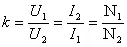 Величина, показывающая, во сколько раз данный трансформатор изменяет напряжение переменного тока, называется коэффициентом трансформации.