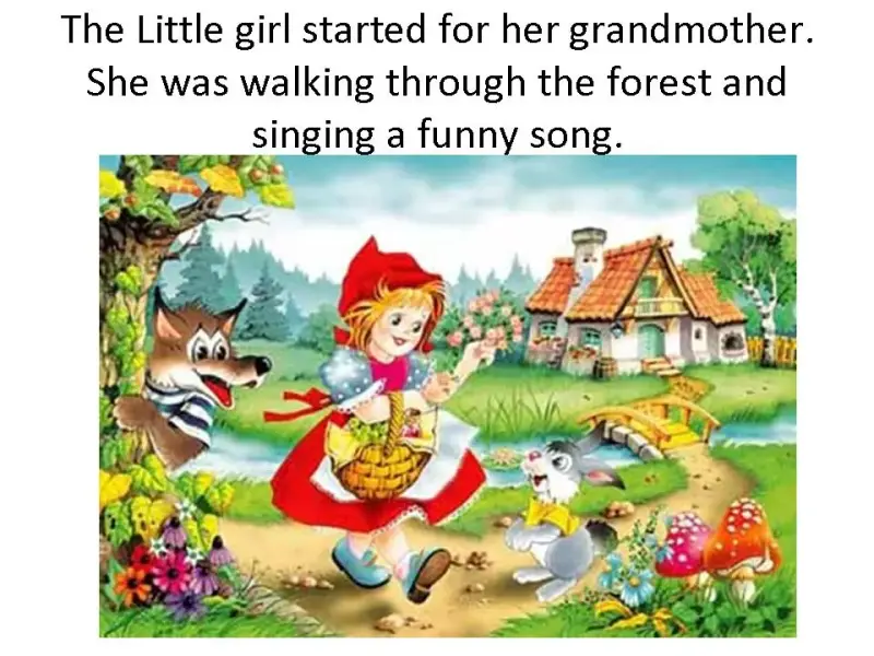 Специально для шотландских школьников я перевела с русского языка на английский известную и любимую русскими школьниками песню Красной шапочки (приложение 1). Эту песню написали русские авторы (поэт - Юлий Ким, композитор - Алексей Рыбников) и исполнила Яна Поплавская, сыгравшая главную роль - Красной шапочки в кинофильме 1977 года «Про Красную шапочку». Я хотела, чтобы дети из Шотландии могли наслаждаться ее исполнением, как и российские школьники. Я использовала презентацию (презентация 2) для наглядного объяснения слов - названий животных (кашалот - cachalot, какаду - cockatoo, бегемот - river house, chimpanzee - обезьяна), которых шотландские малыши не знали даже на своем английском языке, но которые мною были использованы в песне для рифмы при переводе с русского языка на английский язык. Детям предлагалось исполнять эту песню под музыкальное сопровождение (приложение 2).