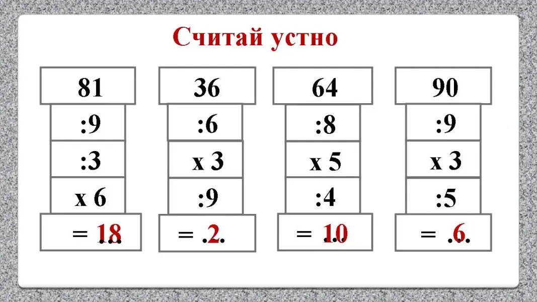 - устные вычисления таблицы умножения и деления;