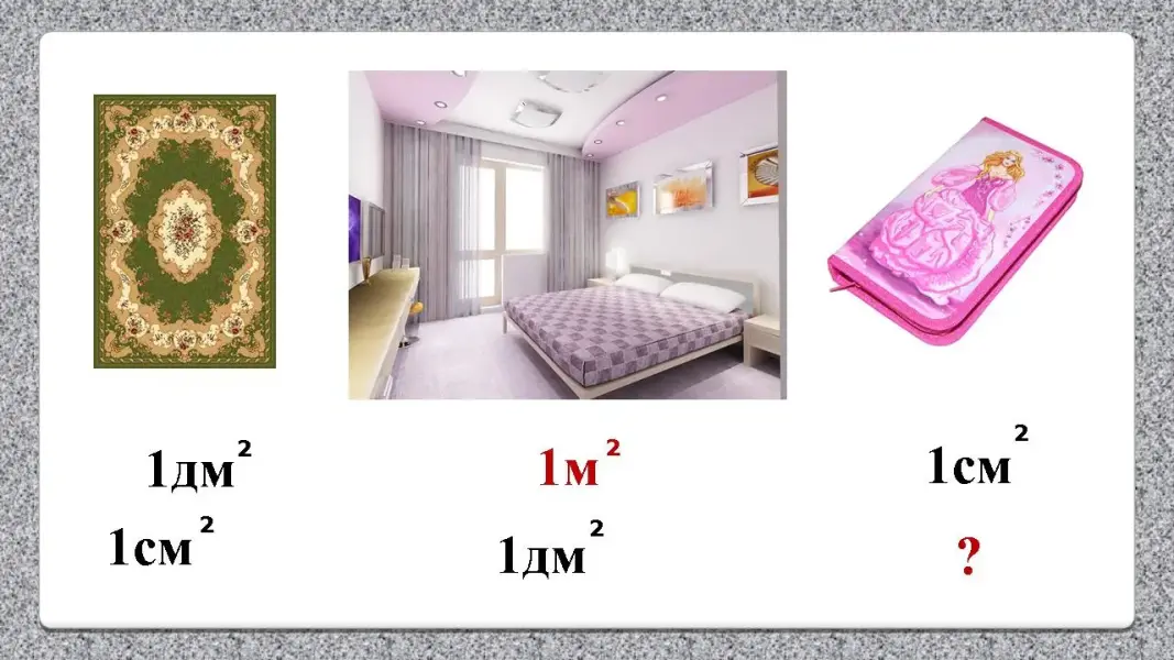 Учитель: Какой меркой удобно измерить площадь комнаты? Кто догадался, как назовём новую мерку?