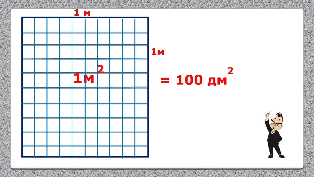 1 м2 = 100 дм2